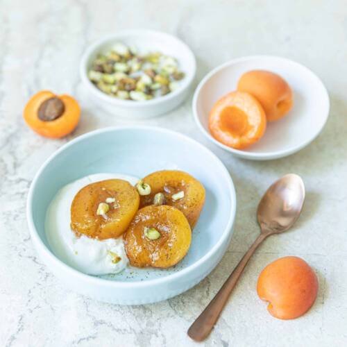 Pocherade aprikoser med rosvatten
